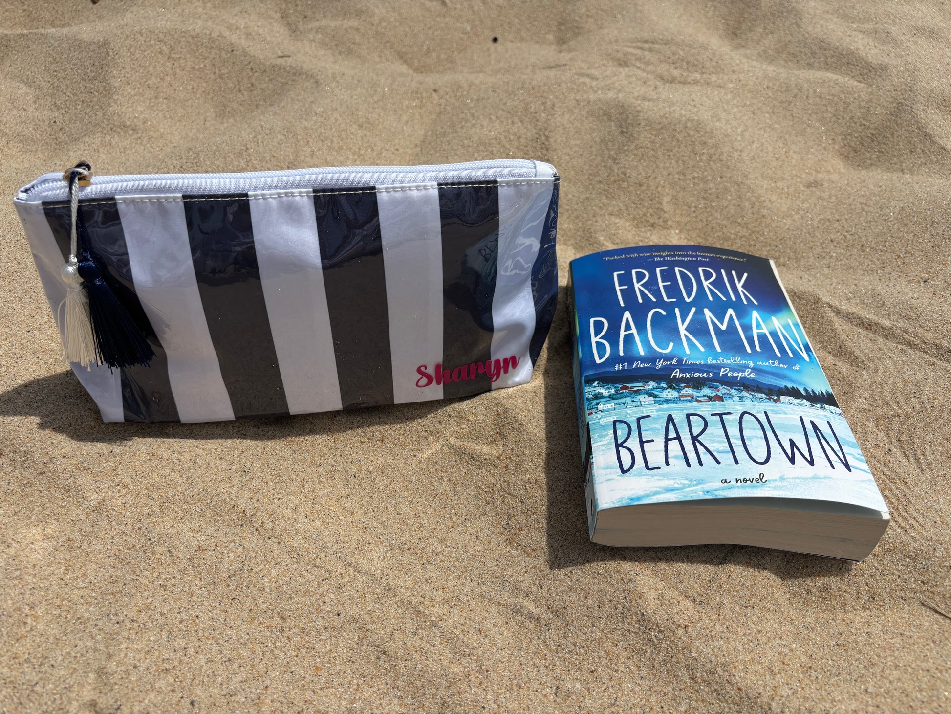 This bag has a name in the bottom right corner in permanent pink vinyl