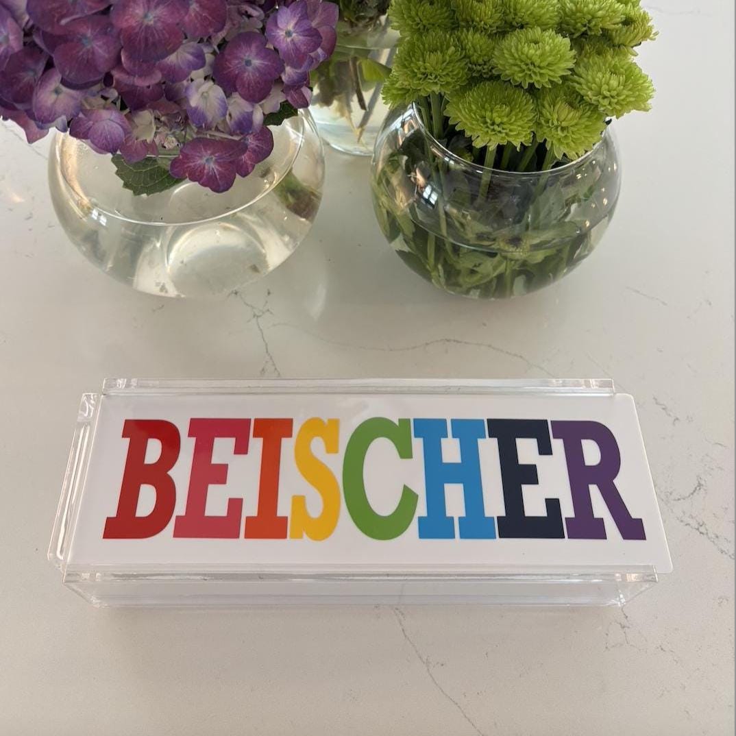 Personalized luxury acrylic rummikub set - custom name on opaque white lid